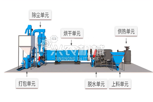 上料机、热风炉、烘干机、除尘器、电机、风机、电器控制柜等。