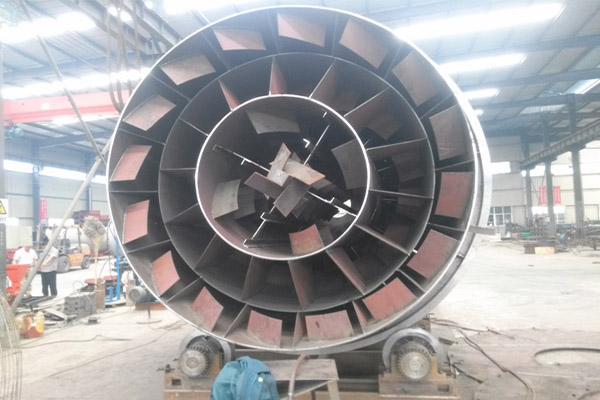 以上各种形式的扬料板可分布在转筒烘干机整个筒体内,为了使物料能够迅速而且比较均匀地送到扬料板上,亦可在给料端1~5m处安装螺旋形导料板,以避免湿物料在烘干机筒壁上黏结堆积。同时因烘干后的物料很容易被扬起而被废气带走,而在排料端1~2m处不装任何扬料板。